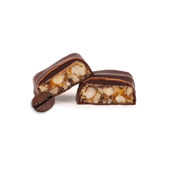 Croccantino (70%) (zucchero, mandorle (25%), nocciole (25%), caffè (0,87%)), cioccolato 30% (cacao minimo 72%) (pasta di cacao, zucchero, burro di cacao, emulsionante: lecitina di soia, aromi). Può contenere tracce di frutta a guscio, lattosio e proteine del latte