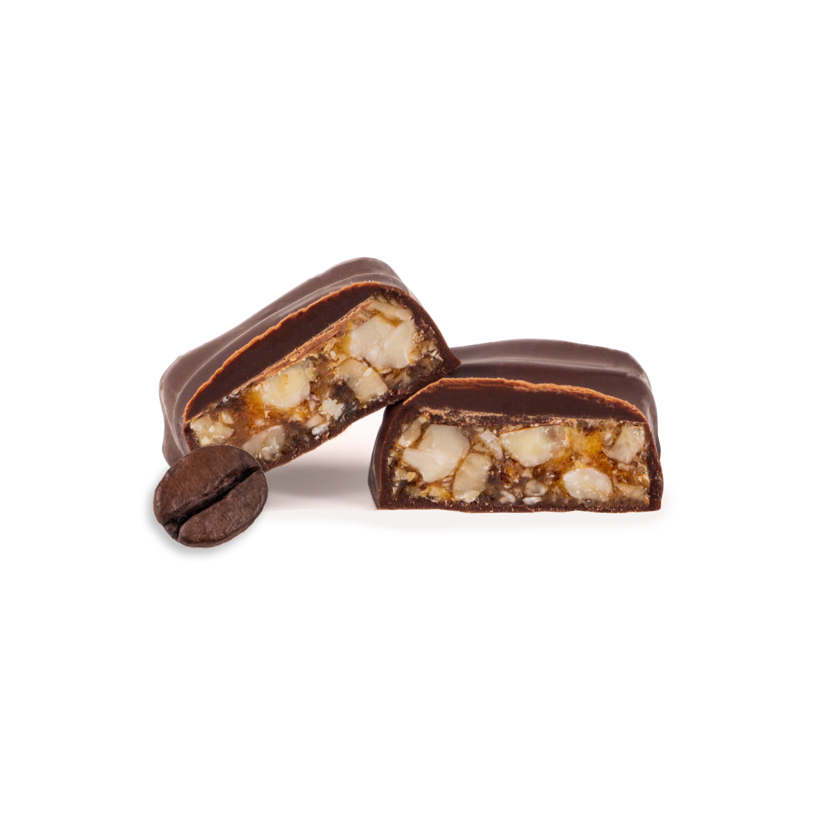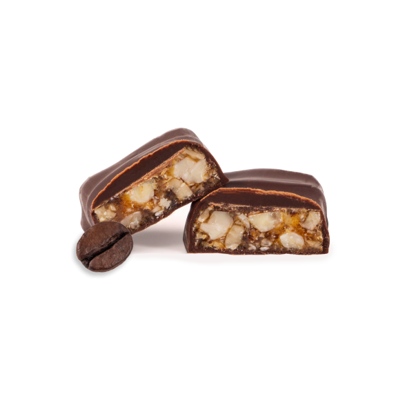 Croccantino (70%) (zucchero, mandorle (25%), nocciole (25%), caffè (0,87%)), cioccolato 30% (cacao minimo 72%) (pasta di cacao, zucchero, burro di cacao, emulsionante: lecitina di soia, aromi). Può contenere tracce di frutta a guscio, lattosio e proteine del latte